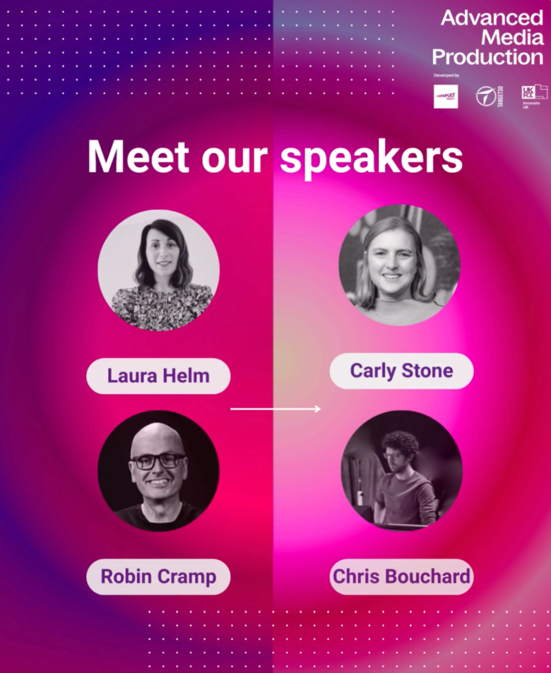 The webinar was hosted by Robin Cramp, Head of Advanced Media Production Studios at Digital Catapult, and featured contributions from: