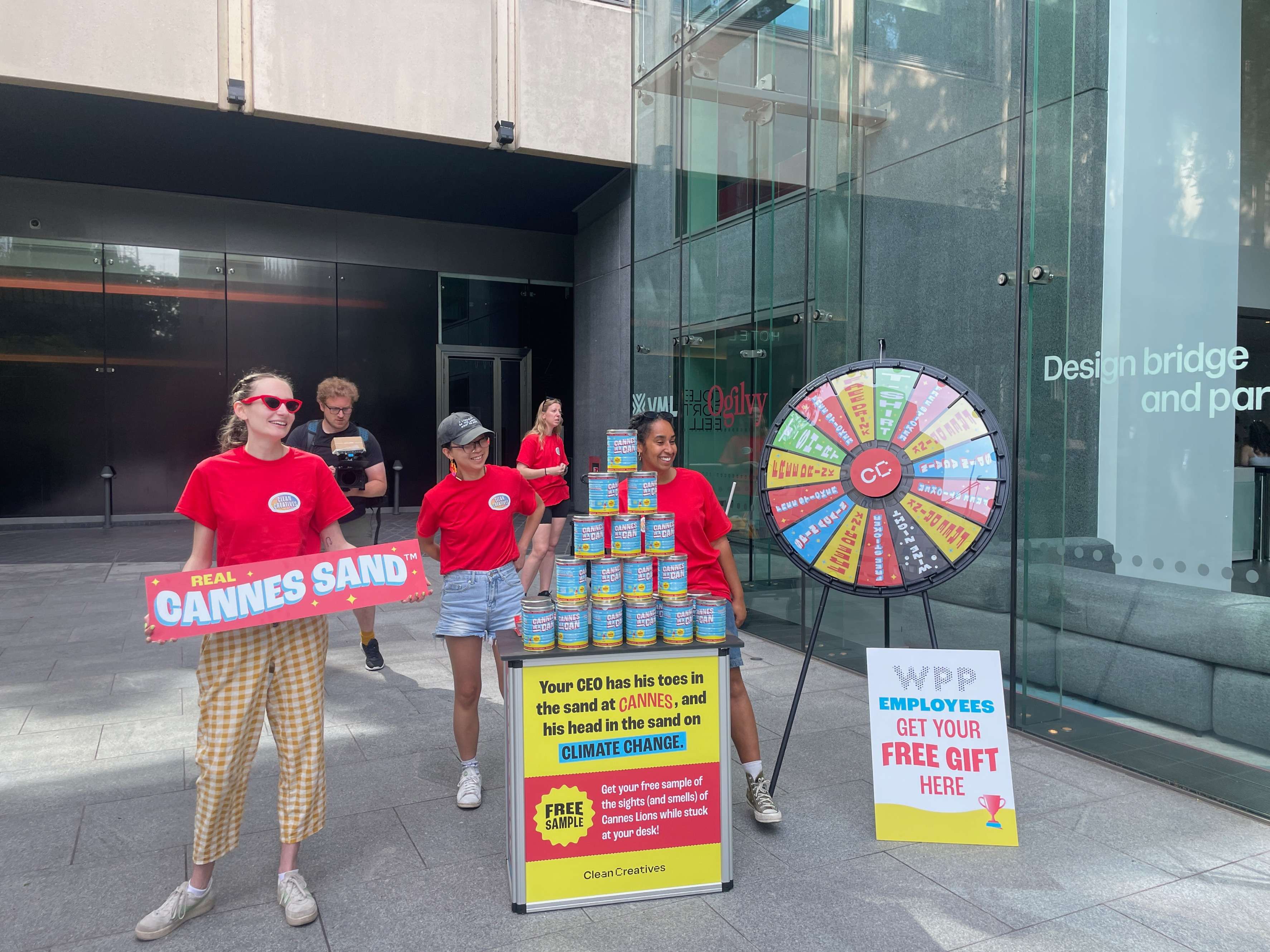 In June 2025, Clean Creatives staged Cannes in a Can - a series of on‑the‑ground activations in London, New York, and Chicago. Rather than heading to the yachts and parties of Cannes Lions, the campaign set up outside the offices of major networks working with fossil fuel accounts including WPP, FleishmanHillard, and Edelma.