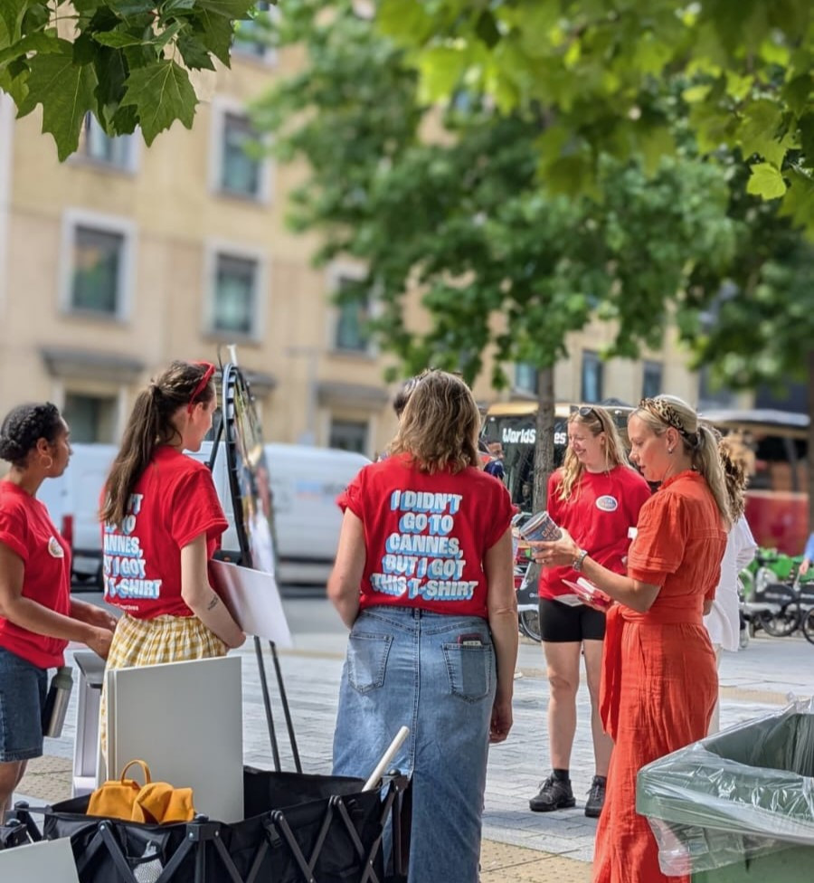 The concept was simple but pointed: while CEOs were in Cannes with their heads buried in the sand on fossil fuel advertising, creative talent/employees remained at their desks doing the real work. Clean Creatives brought Cannes to them in a tongue‑in‑cheek, colourful, and enticing format. Cannes of sand, scratchcards, spin‑the‑wheel games, and even “I didn’t go to Cannes but I got this T‑shirt” giveaways turned the street into a playful activation space.